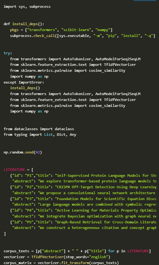 Before starting anything, it is important to get the information ready. First, the right tools and libraries are loaded. Then, all the papers and abstracts are organized so it’s easy to find what you need. The language model is turned on so it can understand the text. A TF-IDF vectorizer is built, and all abstracts are organized to make finding important papers faster.