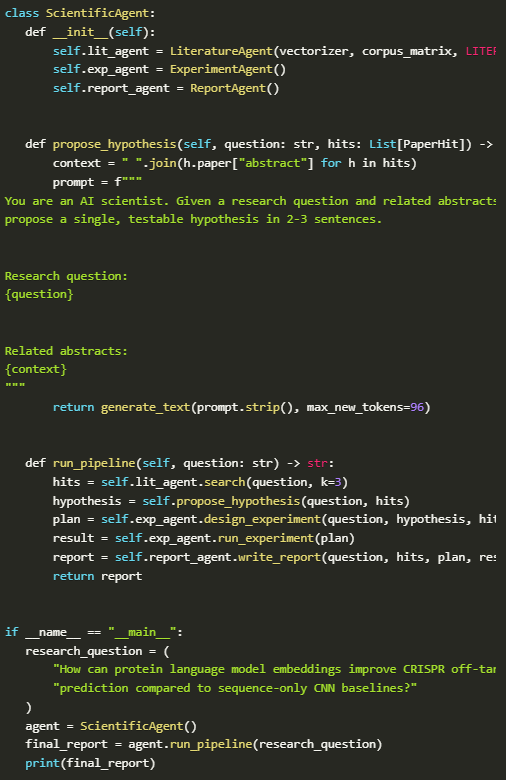 Scientific research is exciting but can quickly become overwhelming, with hours spent reading papers, planning experiments, and organizing results. This agentic framework helps make the process more manageable, but the real power comes from writing the code that brings it to life.