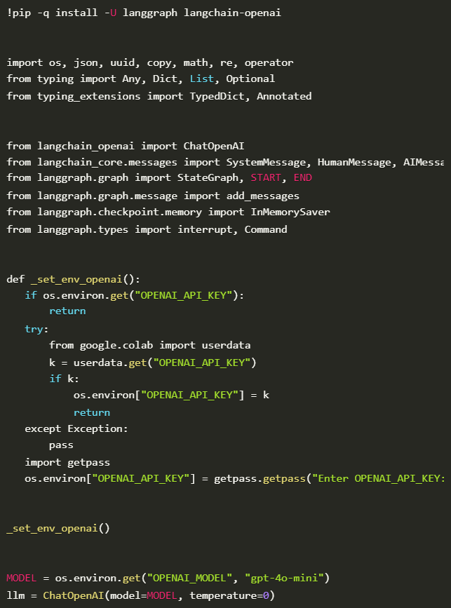 This code sets up a system for using LangGraph and LangChain with OpenAI’s API. Let’s break it down step by step: